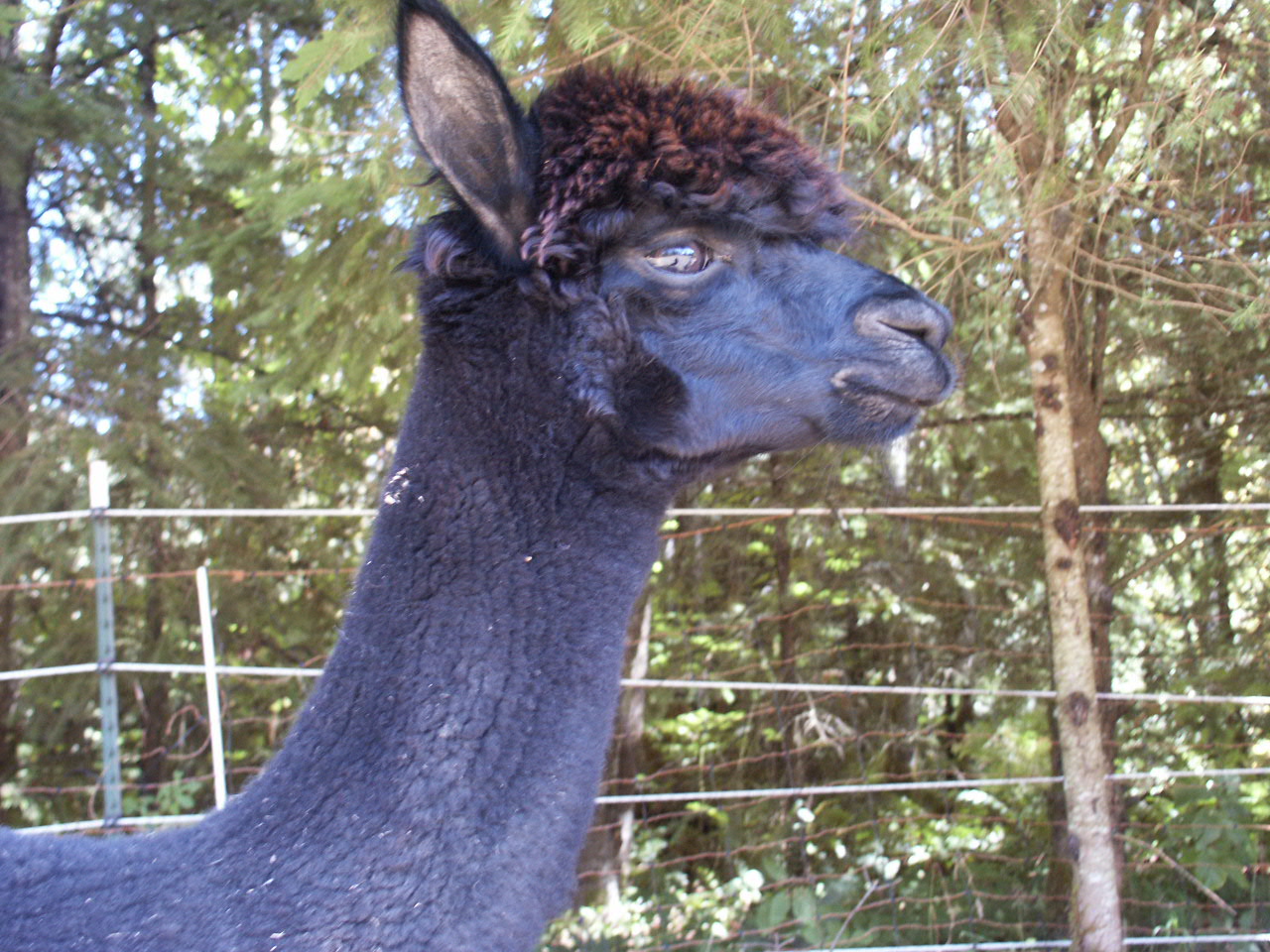 of her crias have been solid in color and dark eyed. Her fiber is wonderful