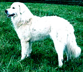 The Maremma Sheepdog is a lively, intelligent, sturdy and courageous dog but never aggressive. The dog should have a coarse white outer coat and a dense protective undercoat. Should be a solid white color and have good solid bones and good musculature development. The head should be wide between the ears and narrow to the muzzle. The ears are small and high set. The eyes should be almond share with black out line and be dark in color.
