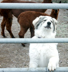 I like to pick the dog that seems to pick me. It should be interested in people and isn't afraid to be removed from the litter. Our dog went right from a litter of ten at eight weeks of age into the barn with the alpacas. So you want a dog that is self confident and brave. Some breeders will keep the puppy and train them as guardians for you but I wanted the bonding time with the puppy. Everyone in our club had a bet on as to how long it would be before the puppy was sleeping in the bed with me, they lost the bet but it was tough.