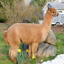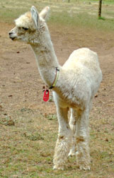 Evita has excellent bloodlines and good fibre stats. Her grandsire Accoyo Artic has surely put his mark on many wonderfully fleeced alpacas in Canada and this girl is no exception. We thoght that Evita should have the ability to produce color and bred to Akon their off spring should be just wonderful, with royalty for bloodlines.