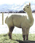 We have a lovely 2002 fawn cria from him, Abigale.